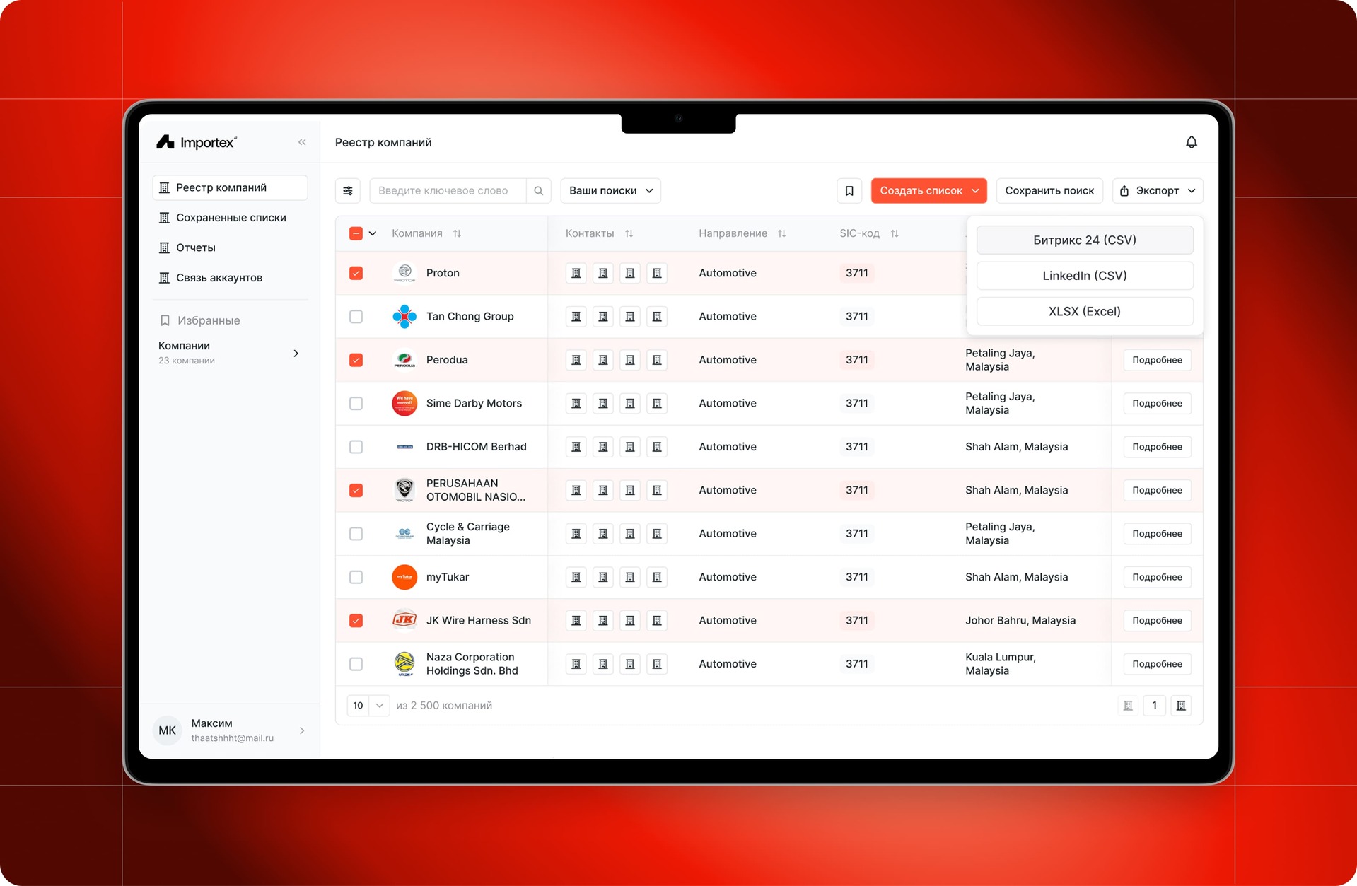 создавайте отчеты по отраслям, странам и выбранным сегментам компаний. проводите первичную аналитику для дальнейшего принятия решений